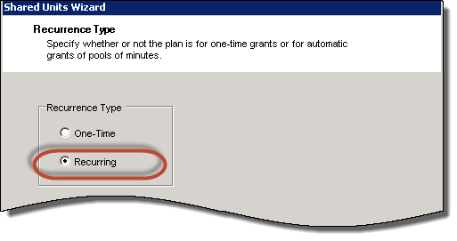 - On the Recurrence Type page set the Recurrent Type to Recurring. You will be setting the recurrence type on the overall discount for the Base Package.