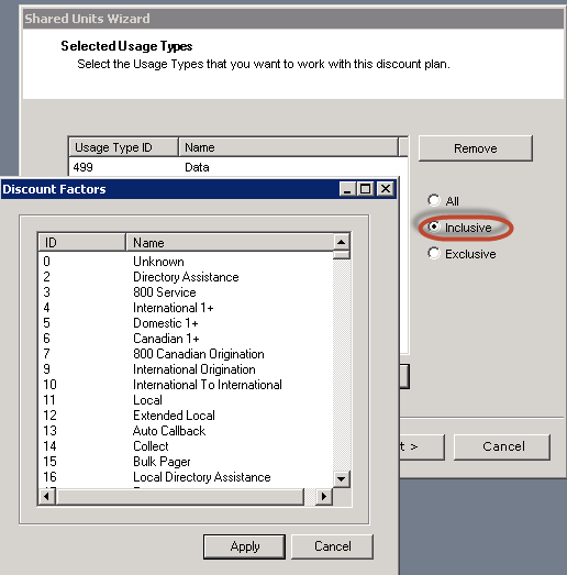 - Select usage types to be included in the discount and select the Inclusive option..