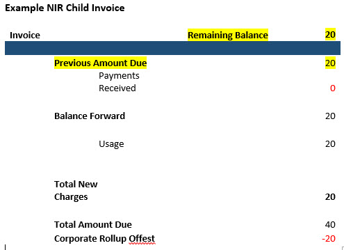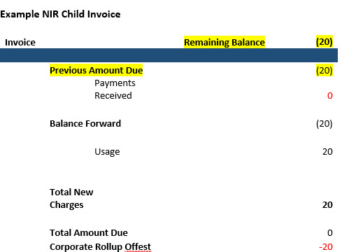 During this period, as indicated above, NIR child accounts will be both carrying a balance themselves as well as rolling up new invoice amounts.